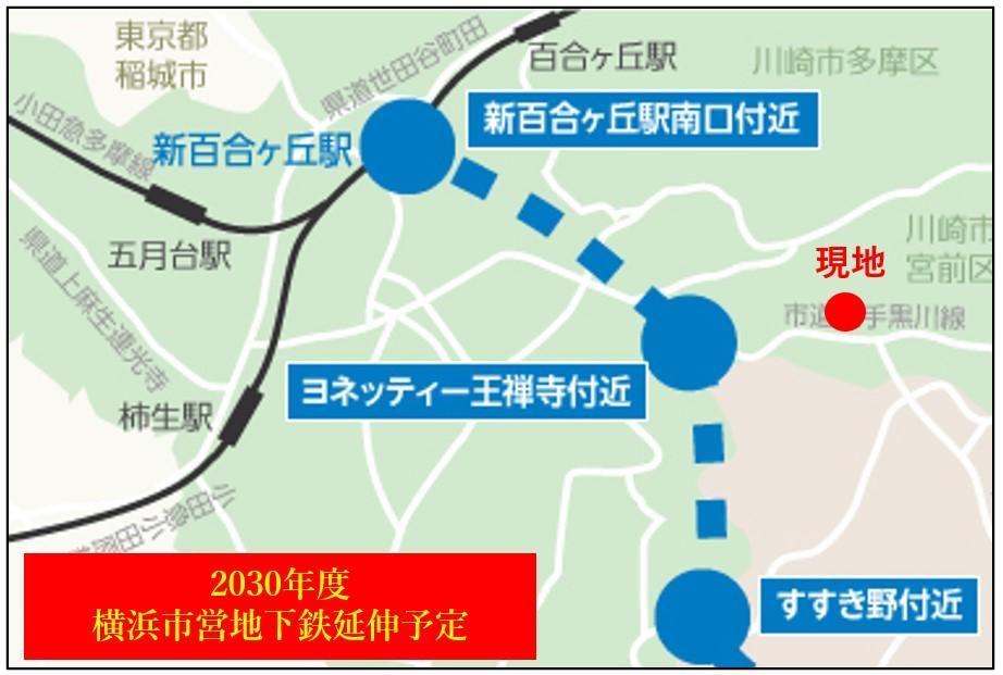 小田急線「新百合ヶ丘」駅までバス15分乗車、 バス停「かわさき記念病院前」徒歩3分 |